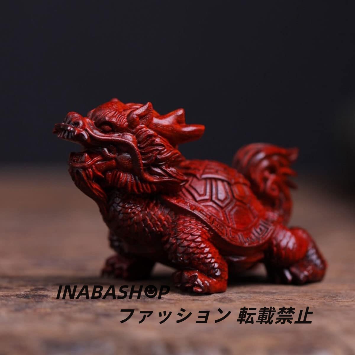 - 風水 龍亀(ロングイ)8cm 木彫り 置物 オブジェ 商売繁盛 開運グッズ 金運アップに 開運祈願 お守り 魔除け お礼 (紫檀製)