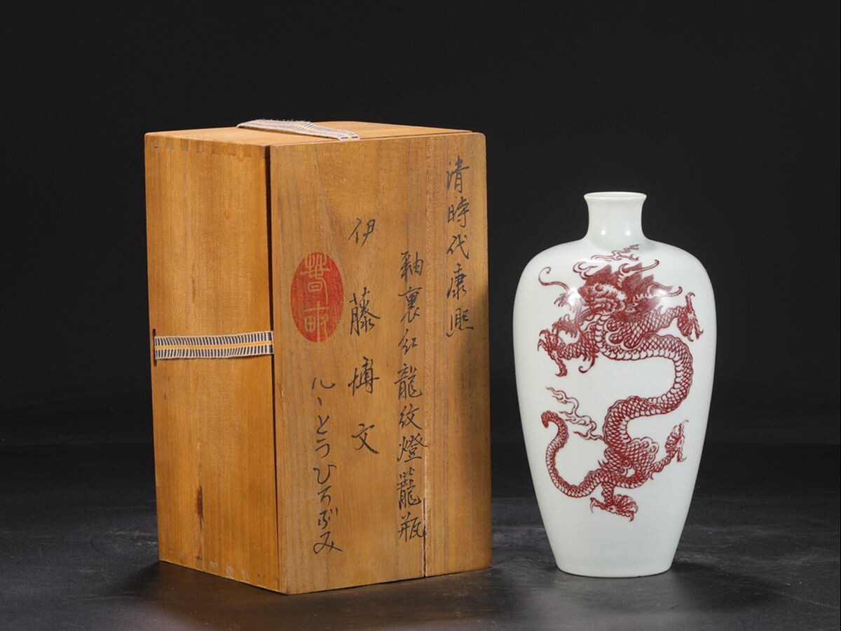- 「清 康熙年製 陶磁器 釉里紅龍紋 燈籠瓶」染付 置物 擺件 古賞物 中国古美術 旧蔵出