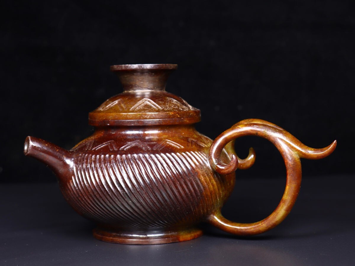 - 「時代物 和田玉 高古玉彫り 玉壺」極細工 擺件 中国古賞物 古美術 旧蔵出