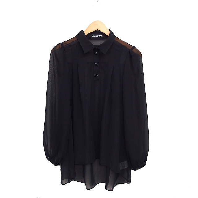 - マリークワント MARY QUANT シアー シャツ ブラウス 長袖 無地 M ブラック 黒 /FT31 レディース