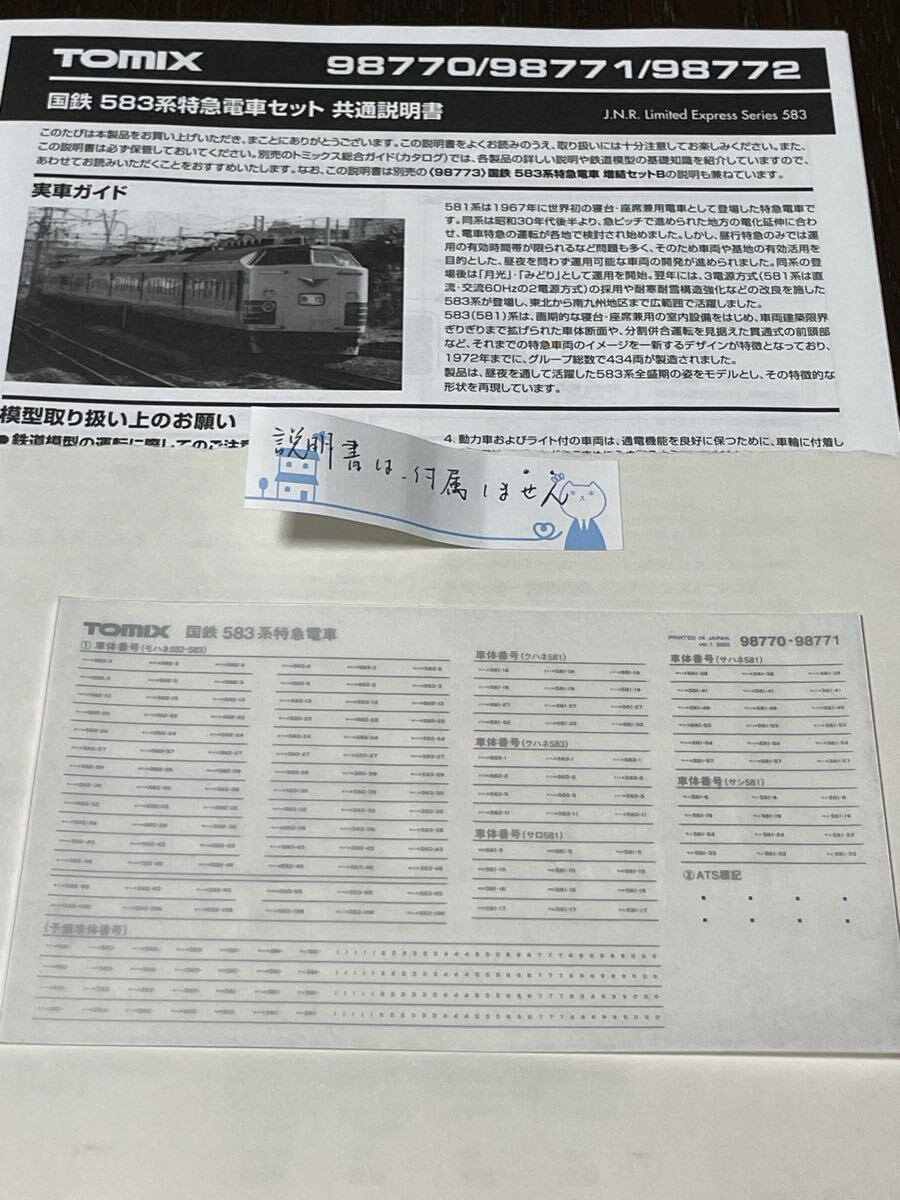 > トミックス tomix 98770 583系【車番インレタ一枚】#485系#KATO#98750#14系#15形#24系#25形#581系#EF81#683系#きたぐに#シュプール