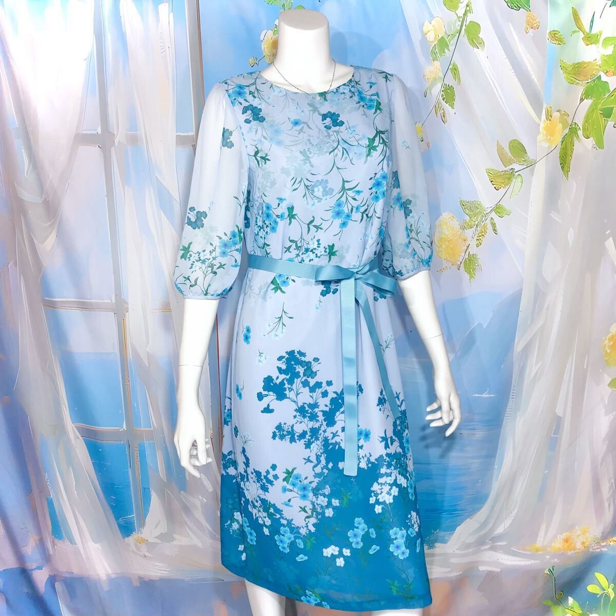 - SunaUna ソフトブルーエメラルドブルーフローラルワンピース M