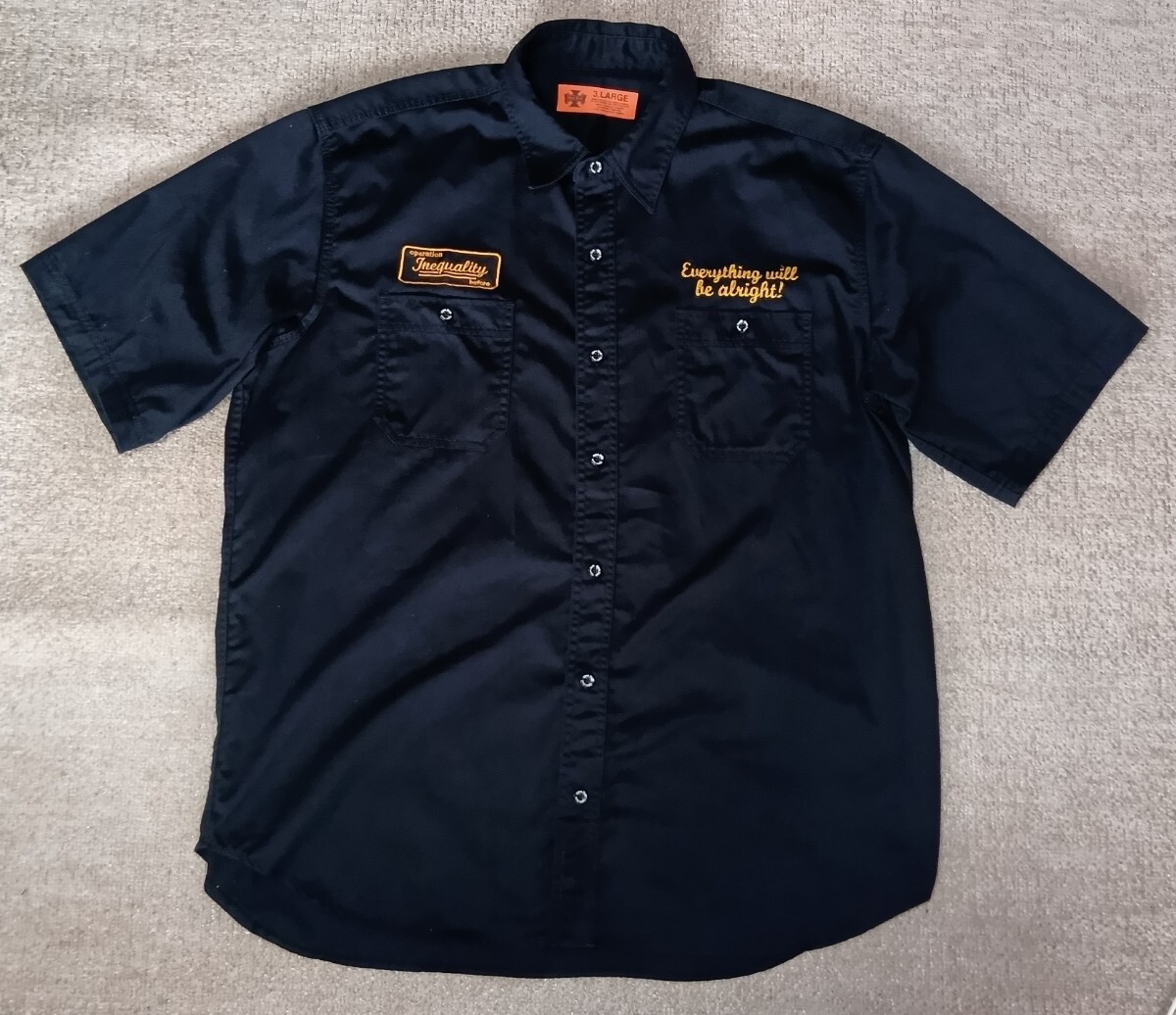 > ◎超美品◎超シンプル◎超ビッグサイズ◎Open Dich ゴールドチェーン刺繍オープンディッチ半袖ワークシャツ Size 3L ブラック アメカジ