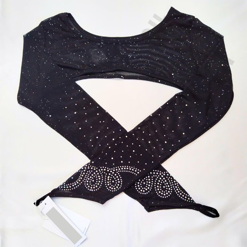 - ベリーダンス 衣装 トップス レディース アームカバー バレエ 社交ダンス ボレロ 練習着 レッスン着 大人 黒 ブラック 寒さ対策 防寒 長袖