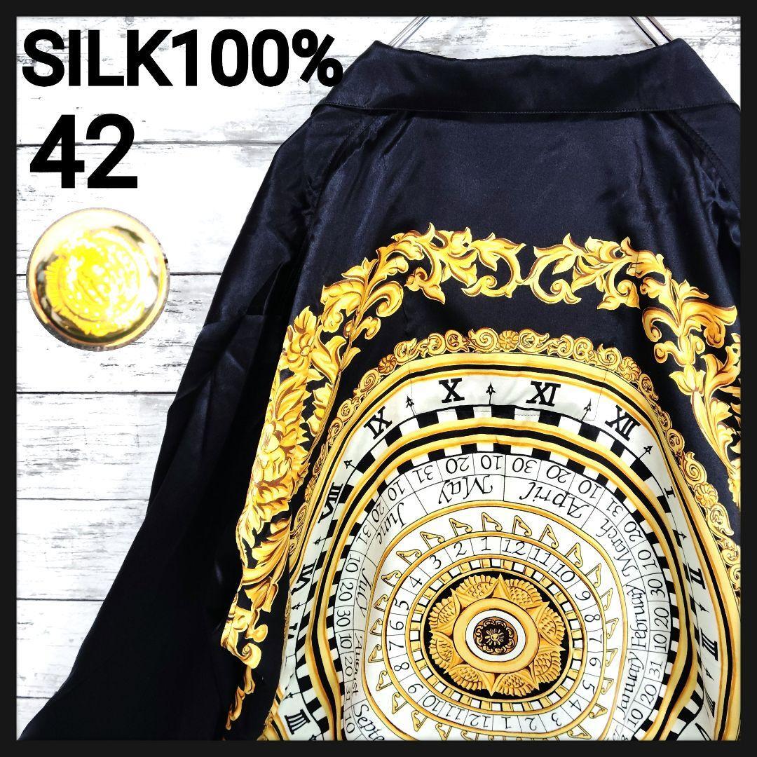 - 美品【シルク100%】ビッグシルエットアートオープンカラーシャツ 金ボタン 時計