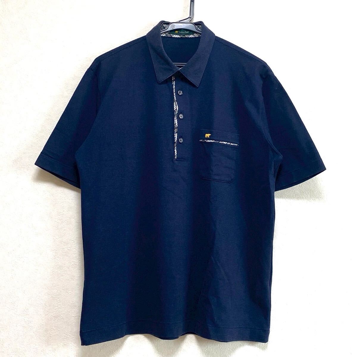 - Golden Bear ゴールデンベアー 半袖 ポロシャツ メンズ L ネイビー 無地 チェック 日本製 鹿の子 カジュアル ビジポロ