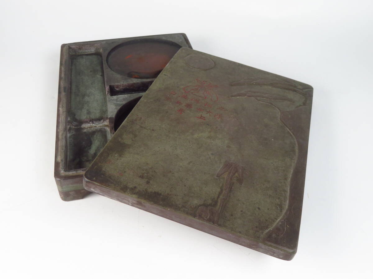 - 旧家整理品 硯 南満州独立歩兵第四大隊 書道具 ミリタリー 第日本帝国 希少品 時代 当時物 骨董品 古美術品 全長20.5cm【831】