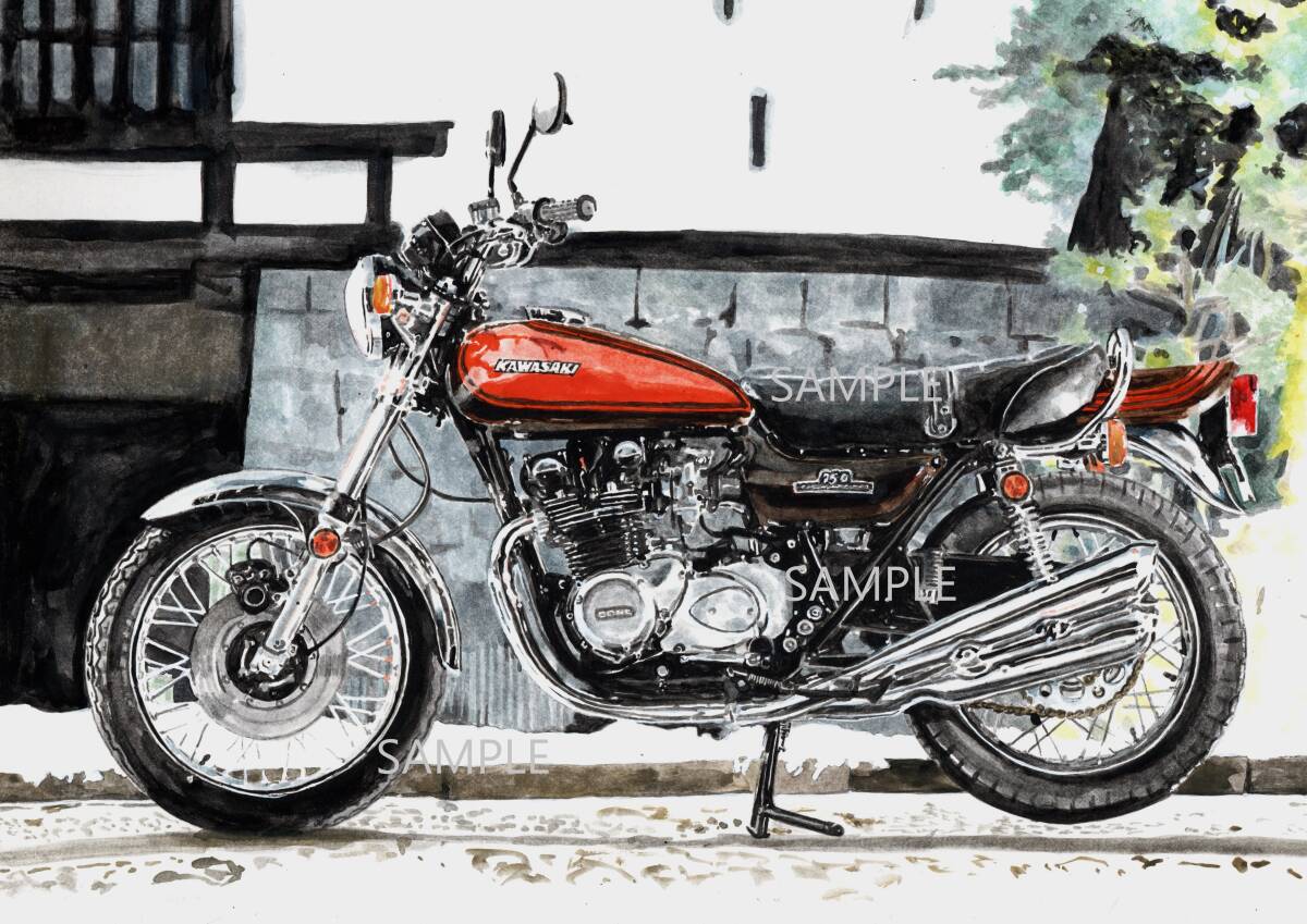 - A4プリントです カワサキ Z2 ② 水彩画 バイクイラスト