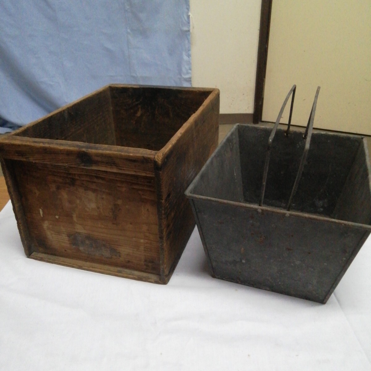 - 計2個 ブリキの箱 木箱 ヴィンテージ アンティーク 古道具 小物入