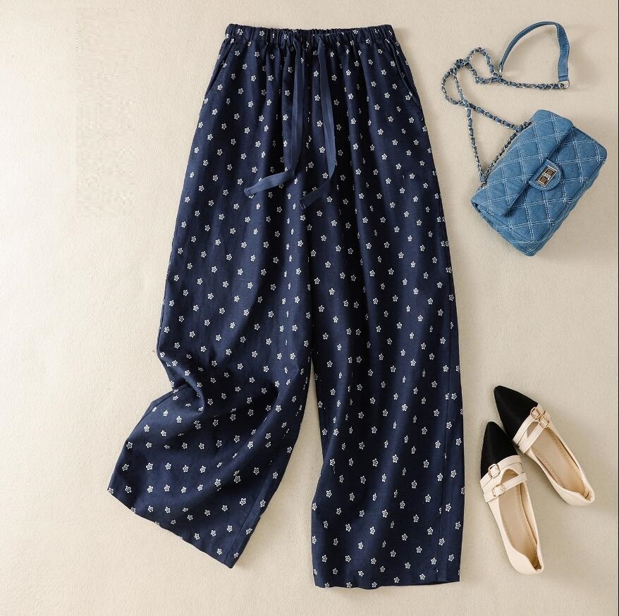 - 人気推薦/ カジュアル ゆったり 大きいサイズ ワイドパンツ ガウチョパンツ 涼しい 通気性 ズボン プリント柄 ウエストゴム