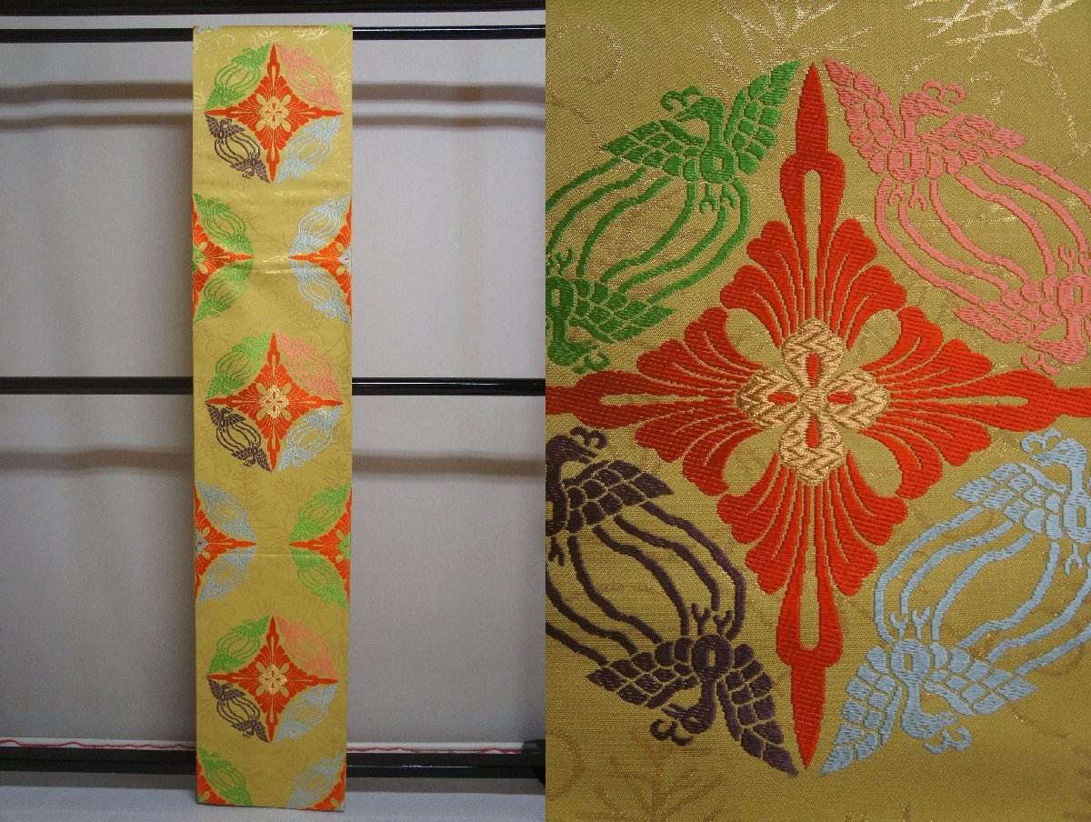 - 本袋『三風魯』正絹カラシ色地鳳凰華紋模様袋帯[O16437]