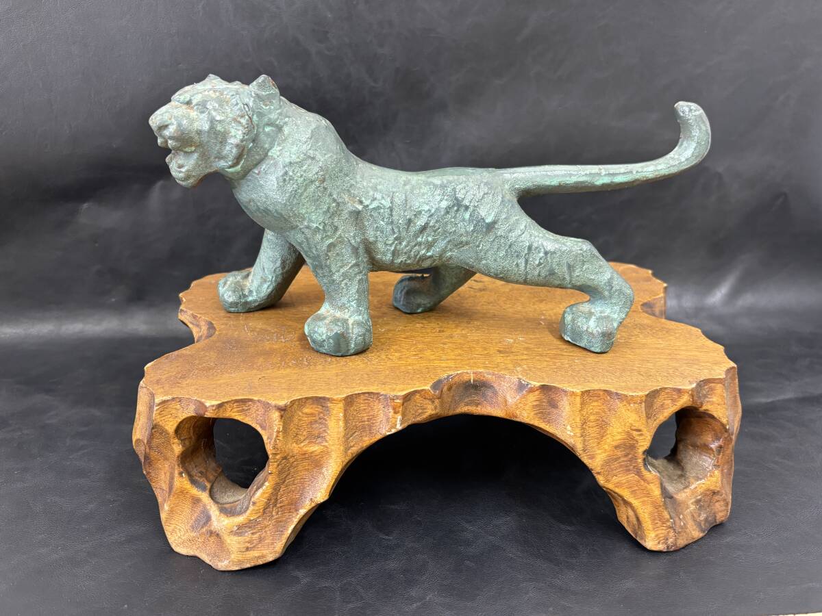 - 青銅 虎 置物/台座付 本体横22cm縦10cm幅9cm★6677管理
