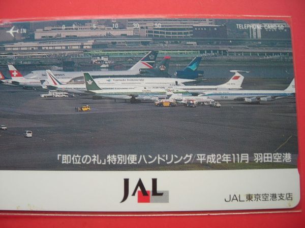 - 日本航空 JAL 「即位の礼」特別便ハンドリング JAL東京空港支店 110-102917 未使用テレカ