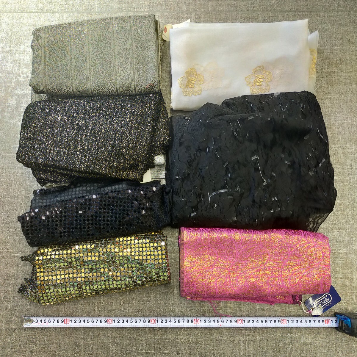 - す3371 生地 ラメ スパンコール風 レース 金糸 刺繍 ポリエステル まとめ売り ハンドメイド リメイク 布地 手工芸