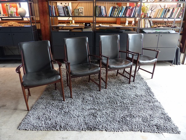 > デンマーク|Sren Willadsen(ソーレン・ウィーラーセン)社|カイ・リンフェルド・ラーセン|アームチェア4脚セット|革/ローズウッド