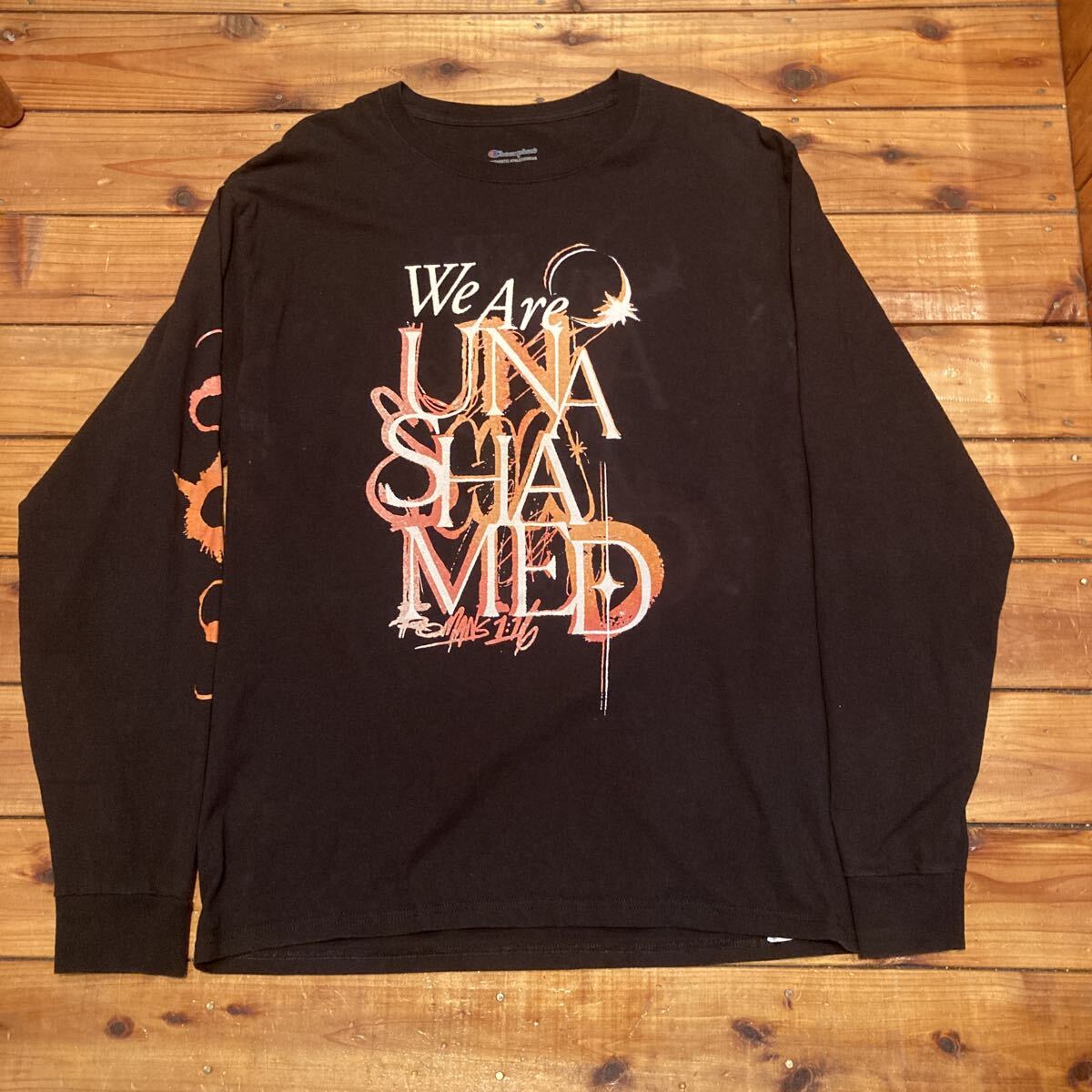 - Champion チャンピオン 長袖Tシャツ ロンT UNASHAMED ツアーT Lサイズ USA古着 アメリカ古着 バンドT
