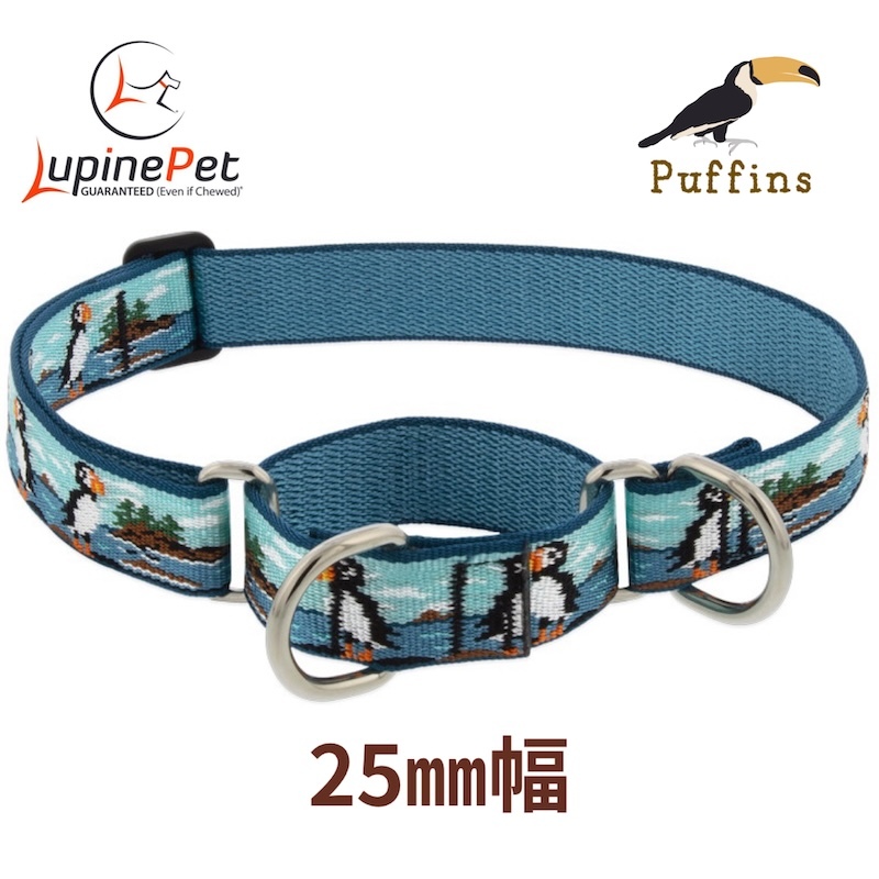 > ハーフチョークカラー・Lサイズ・25mm幅 パフィン柄 48-68cm LUPINEルパイン アメリカ製 軽量丈夫・大型犬