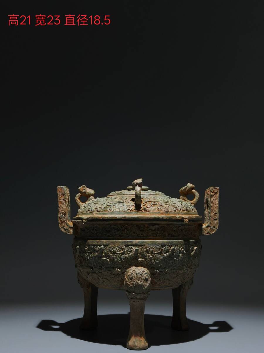 - 【超珍館蔵】戦 青銅製 羽紋鼎 青銅器 置物 賞物 古賞物 古董品 古美術品 時代物 旧家蔵出 稀少珍蔵品