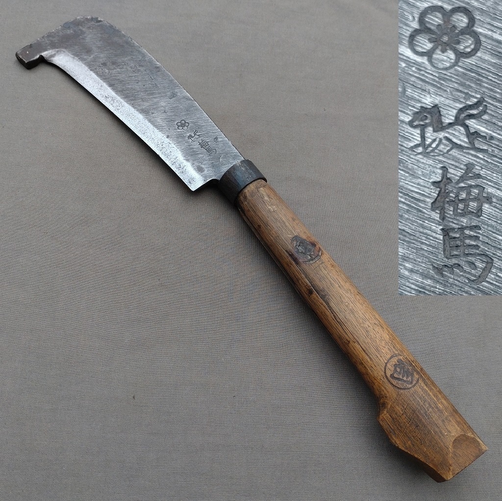- 石付エビ鉈 梅馬 刃長約140㎜ 峰厚約6㎜ 重量約500g なた ナタ 鉈 槙割り キャンプ アウトドア 工具 【4501】【b】