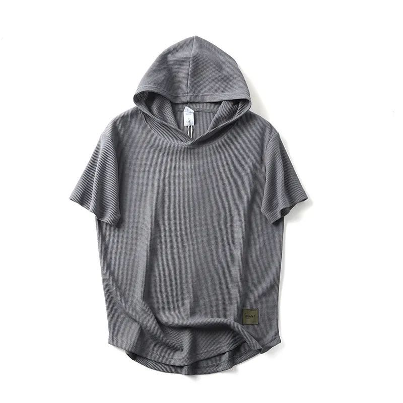 - 新入荷 大人気ワッフル メッシュ 半袖 カットソー メンズ サマーパーカ 無地 盛夏 薄手 速乾 通気性 伸縮性 パーカー 半袖Tシャツ/グレー