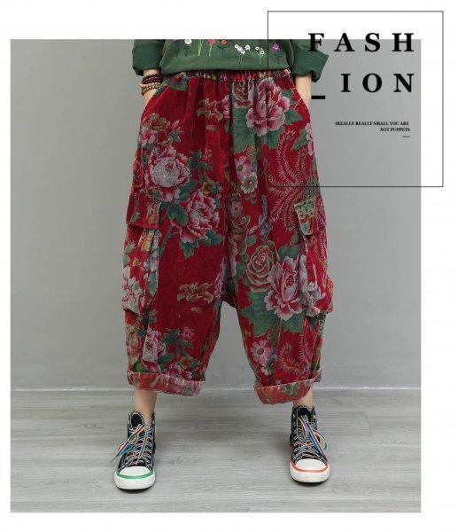 - gl 2509 パンツ 綿&麻 洋服ミックス アンティーク風 ロマンファッション 花柄