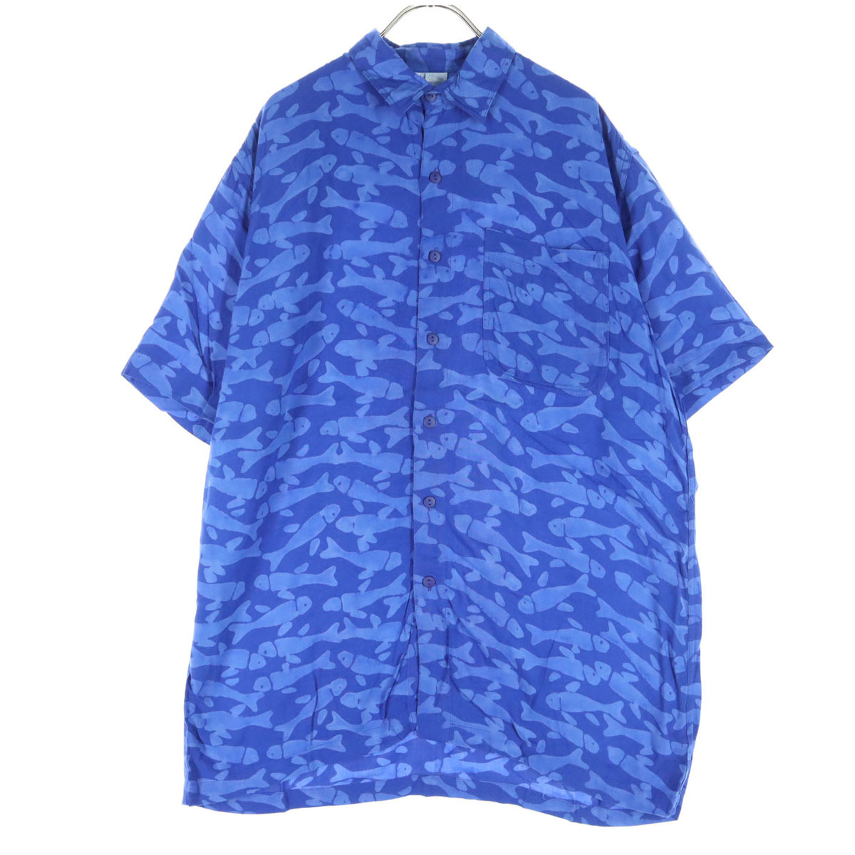 美品 blue ginger ブルージンジャー 魚総柄 半袖 アロハシャツ M ブルー メンズ