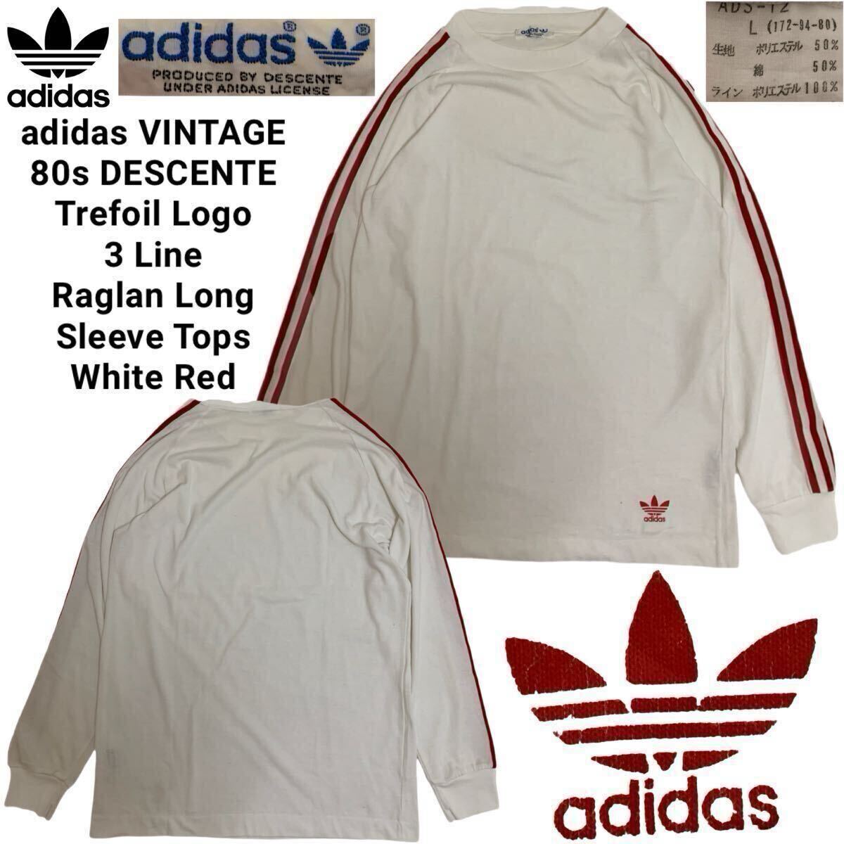 - adidas VINTAGE アディダス ヴィンテージ 80s トレフォイルロゴ 3ライン ラグラン ロングスリーブトップス ホワイト L DESCENTE アーカイブ
