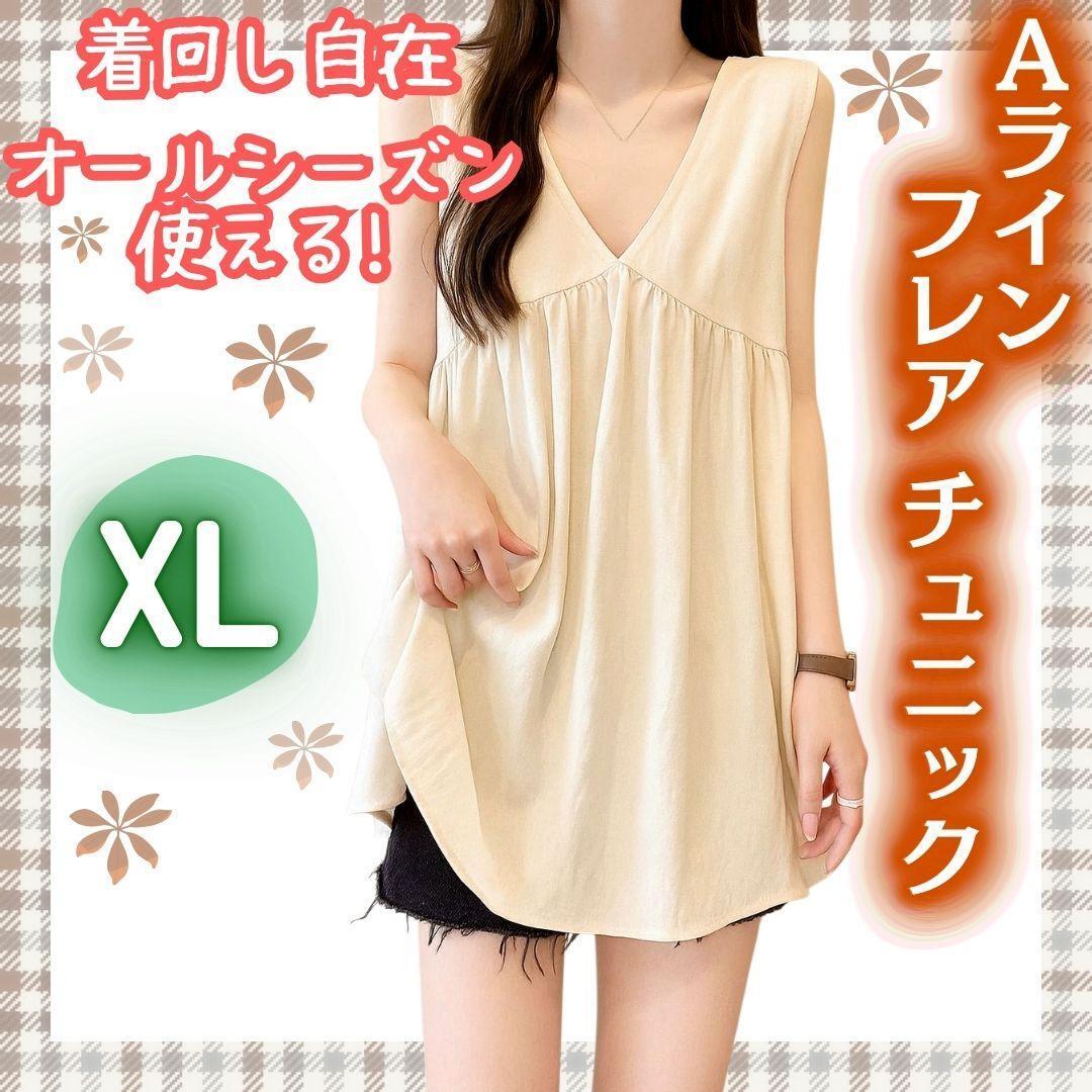 - ノースリーブ ロング XL Vネック Aライン フレアチュニック オフホワイト