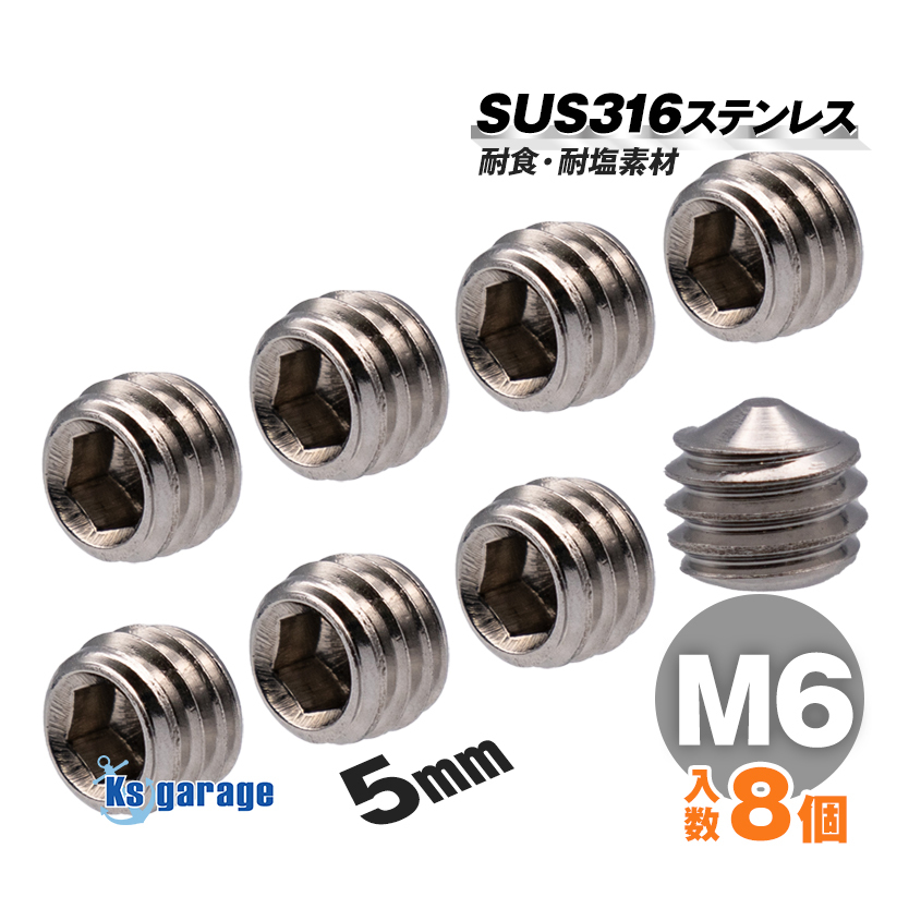- イモネジ M6×5 P1.00 SUS316 ステンレス ホーローセット 8個セット 耐食 耐孔食 マリン金具 パイプジョイント 交換用 とがり先 止めネジ