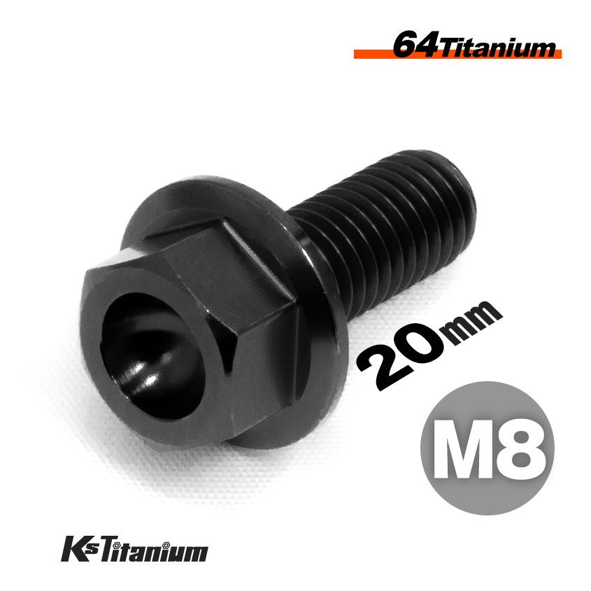 - チタンボルト M8×20 P1.25 ブラック 64チタン フランジボルト 全ネジ Ti-6Al-4V Gr5 チタン合金 バイク 自転車 ボルト 軽量