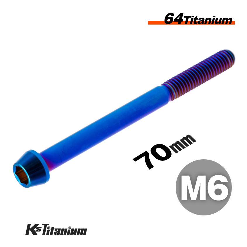 - チタンボルト M6×70 P1.0 焼き色 1本売り 64チタン テーパーボルト スレッド 25mm バイク レストア パーツ