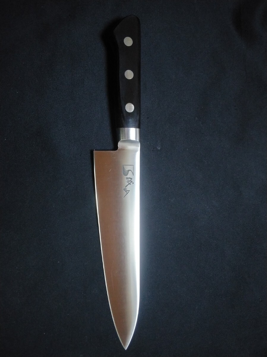 - 城山刃物製作所(堺業務用刃物メーカー直売)六寸 牛刀 10A 城山ネーム入り 黒合板柄 口金付き