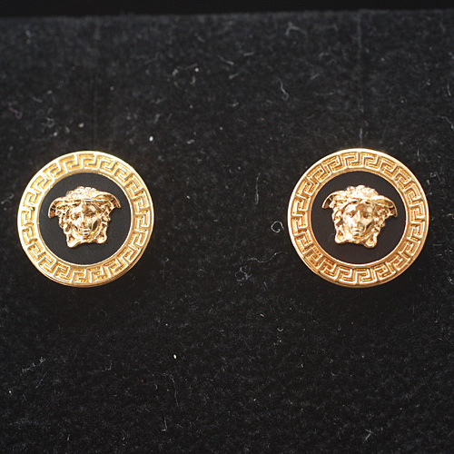 - ヴェルサーチェ 直径 1.4cm強 メデューサ スタッド ピアス ブラック×ゴールド ラウンド ベルサーチ ヴェルサーチ 1008782(16602)
