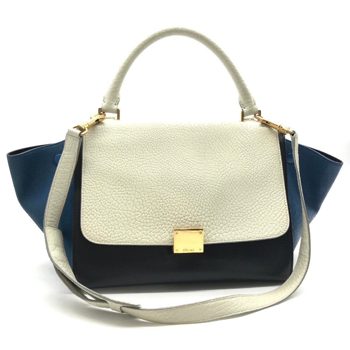 - 美品 CELINE セリーヌ トラペーズ レザー 2WAY ハンド バッグ ブルー|ブラック|ホワイト k1118