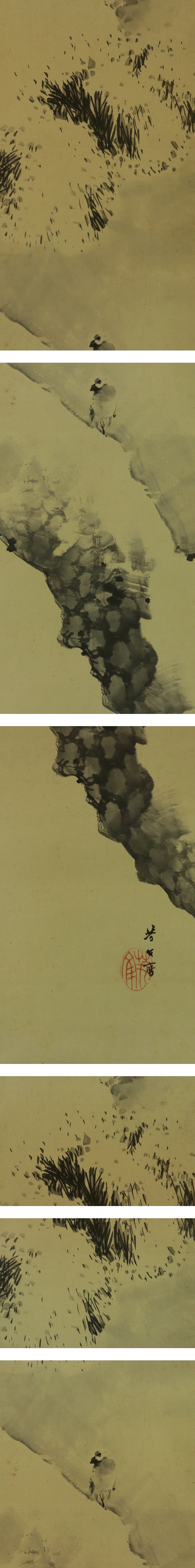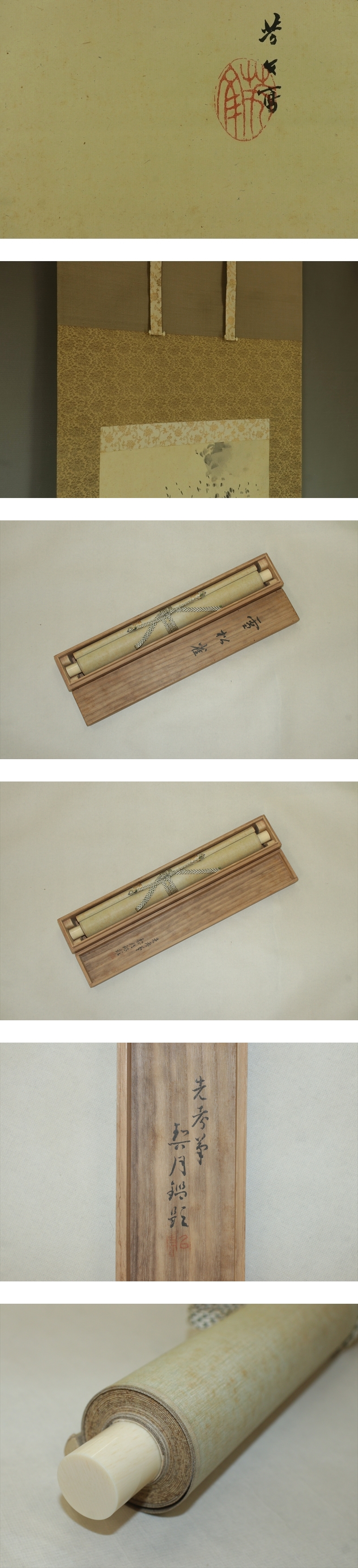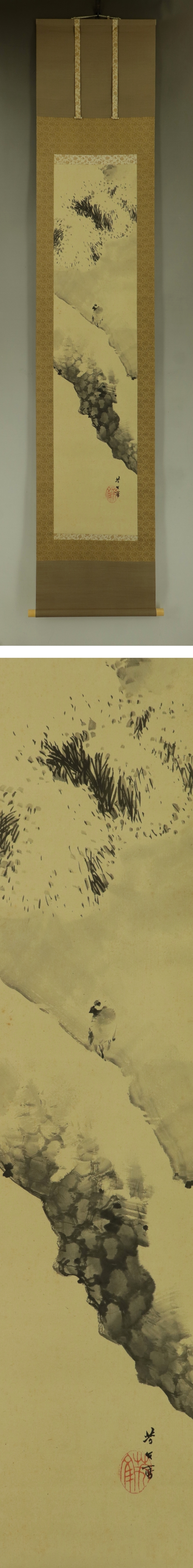 - 【真作】菊池芳文【雪松雀】◆紙本◆識箱◆掛軸 s09048