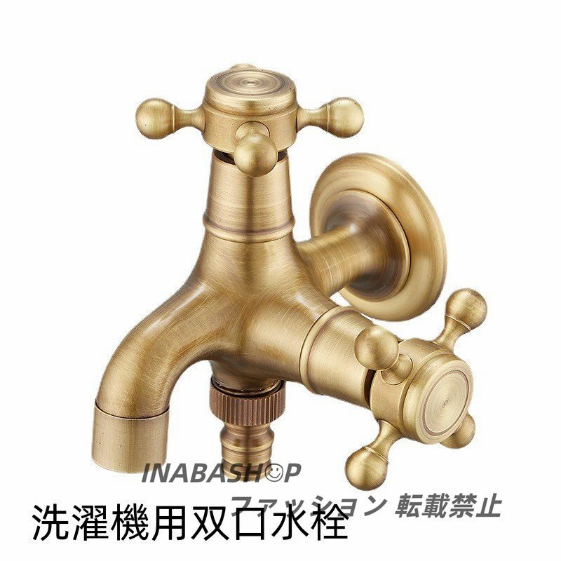 - 洗濯機用 蛇口 双口水栓 分岐 二股蛇口 2口水栓 銅 万能二口横水栓 表面処理 耐食性 二重水出口 二重ハンドル 混合水栓 蛇口 節水 水道
