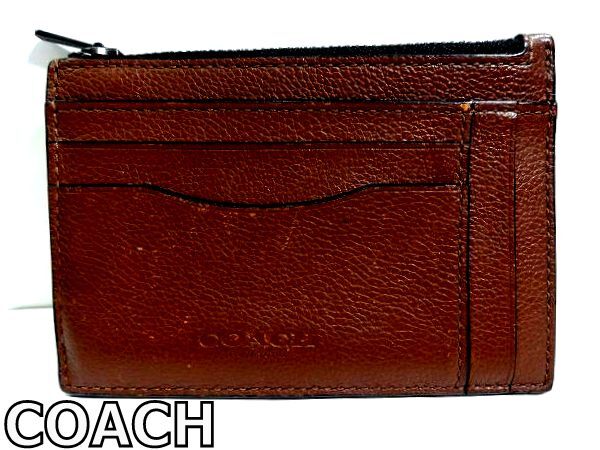 - X5I015◆本物◆ コーチ COACH ブラウン レザー パスケース カードケース 小銭入れ コインケース