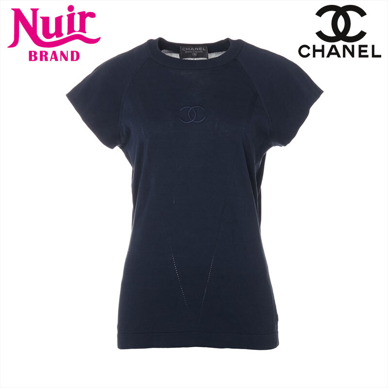 - シャネル CHANEL ニット Size:38 コットン ニット 半袖 ココマーク ネイビー