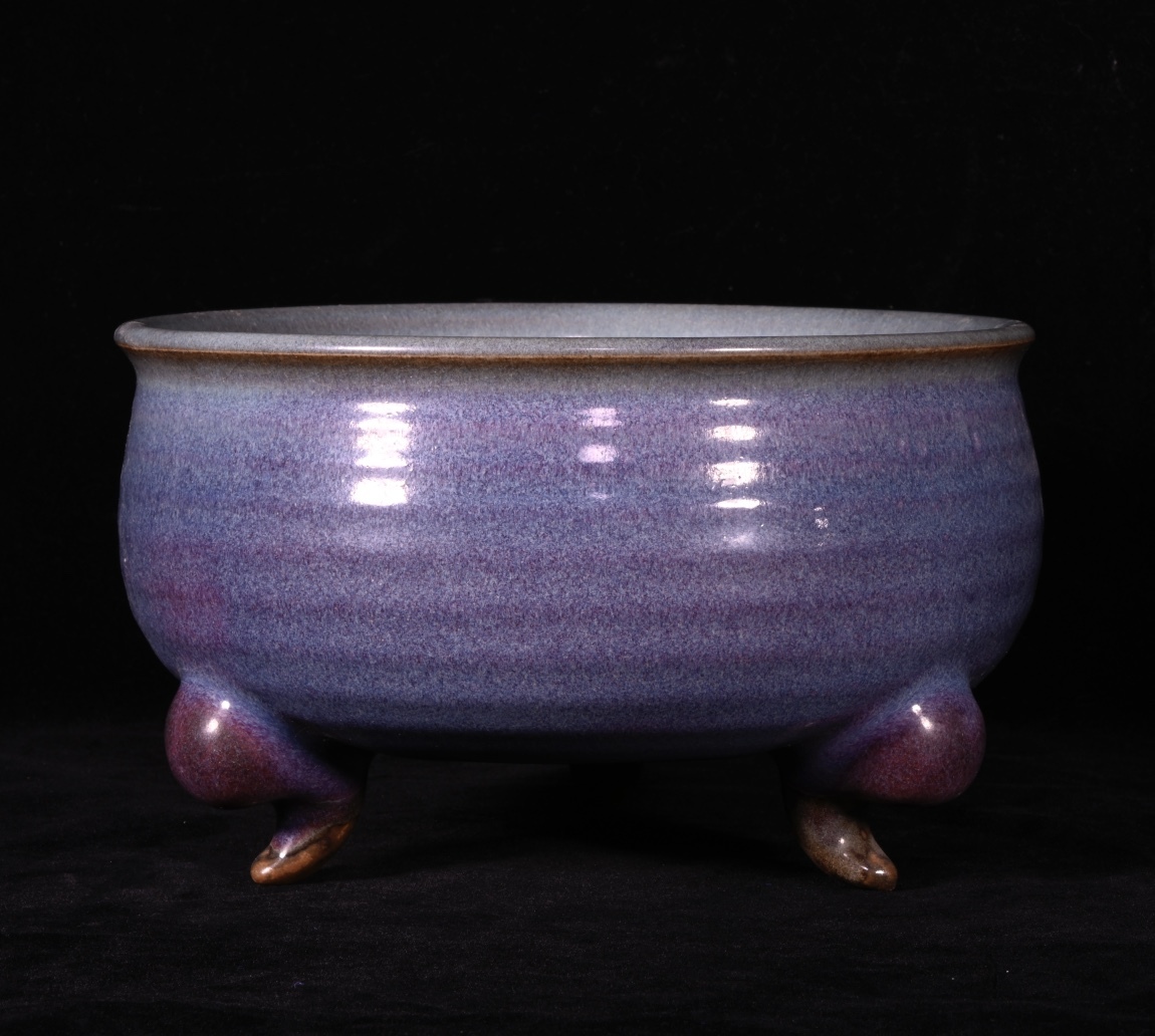 - 旧蔵 宋 鈞窯 眩紋 三足炉 陶芸 古陶磁器 中国磁器 極細工 中国古玩 骨董品 古美味 209
