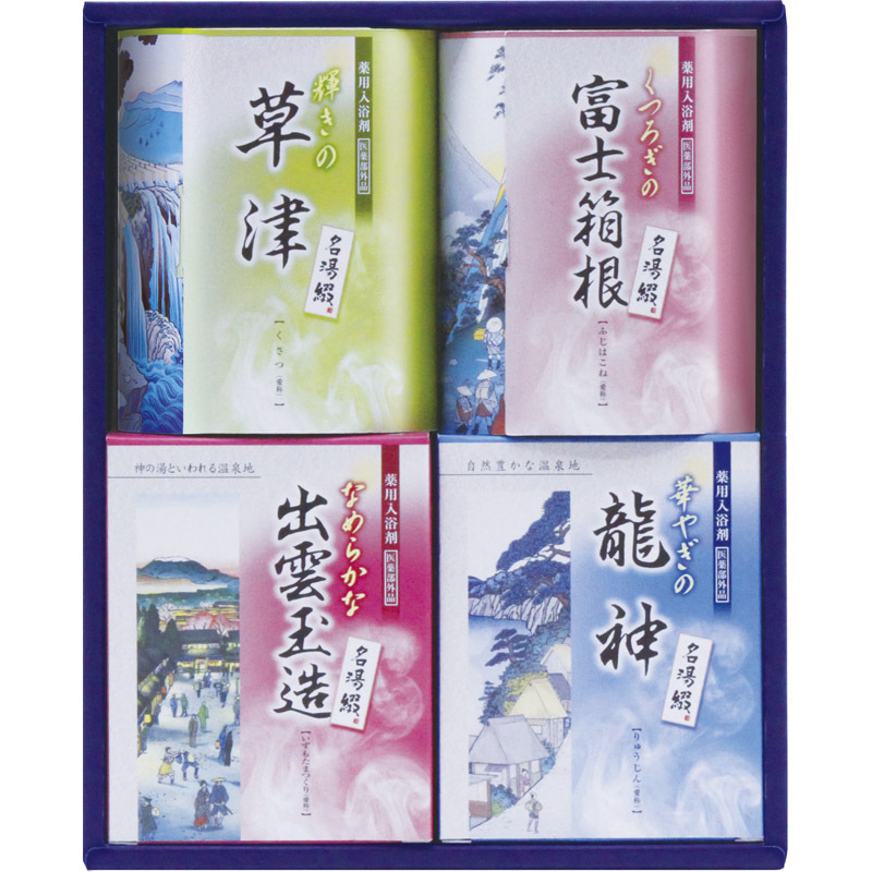 〇注意事項・送料800円が販売価格に含まれています・お取り寄せ商品です。弊社にて手配後、メーカー・卸業者からの直送になります。・まれにメーカー欠品、出荷遅延等が発生致します。問題発生時は別途メールにてご連絡致します。・配送方法の指定、日時指定、置き配、ギフト対応、他商品との同梱配送などは対応できません。・まとめ買いや複数購入の場合は通常より発送に時間が掛かる場合がございます・複数個口の場合、2階以上への搬入ができない場合があります。(その場合は1階での受け渡しとなります)・大型連休、お盆、年末年始などは発送をお休みさせていただく場合がございます・メーカー都合により、パッケージは予告なく変更される場合がございます・梱包用のダンボールはリサイクル品を使用させていただきます。・注文に関するご連絡(注文確定通知・発送通知など)はメールでご案内させていただきます※商品ページの内容について、少しでもご不明な点などがございましたら購入前に一度ご連絡ください〇商品説明あらゆるギフトシーンにおすすめです!幅広い層に人気の名湯・秘湯をモチーフにした薬用入浴剤です。保湿成分(ケイ酸ナトリウム)配合でお肌しっとり、おだやかな香り立ちのぼるギフトセットです。〇商品仕様●内容:薬用入浴剤:25g×2包×2(富士箱根・草津×各1)、薬用入浴剤:25g×3包×2(龍神・出雲玉造×各1)規格●化粧箱入(197×35×243mm) 439g●加工地:日本(出典:株式会社 八大)