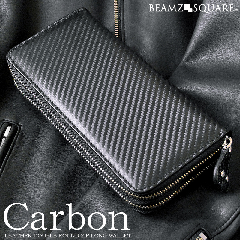 - BEAMZSQUARE カーボンレザーダブルファスナー大容量長財布 BZSQ-955BK