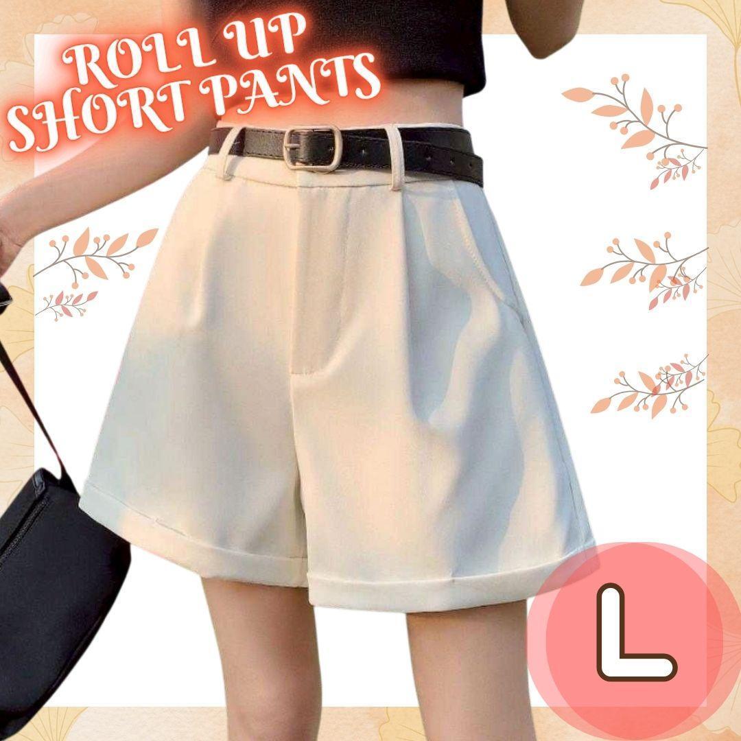 - ショートパンツ Aライン L ハイウエスト ハーフパンツ ロールアップ ホワイト