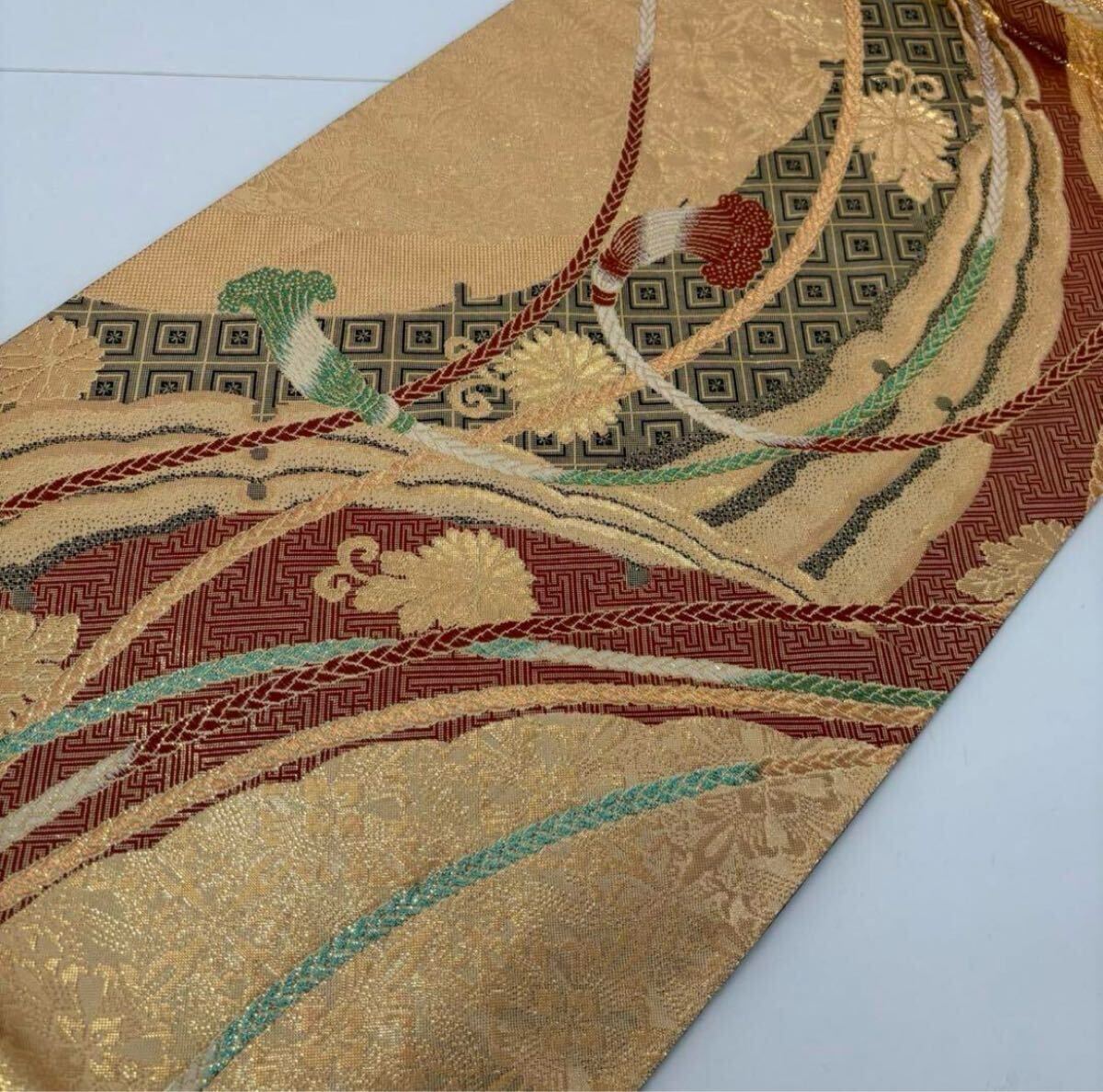 - 【楓】袋帯 正絹 平成王朝文 金彩の煌びやか加工 KU-2451