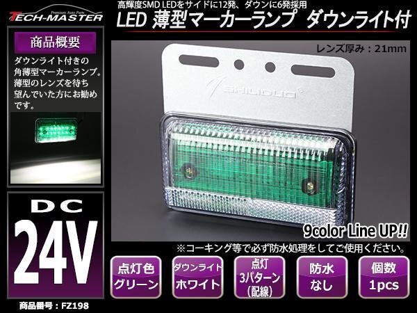 - 24V 薄型LEDマーカーランプ グリーン発光 / ダウンライト ホワイト発光 角型 トラック サイドマーカー 路肩灯 FZ198
