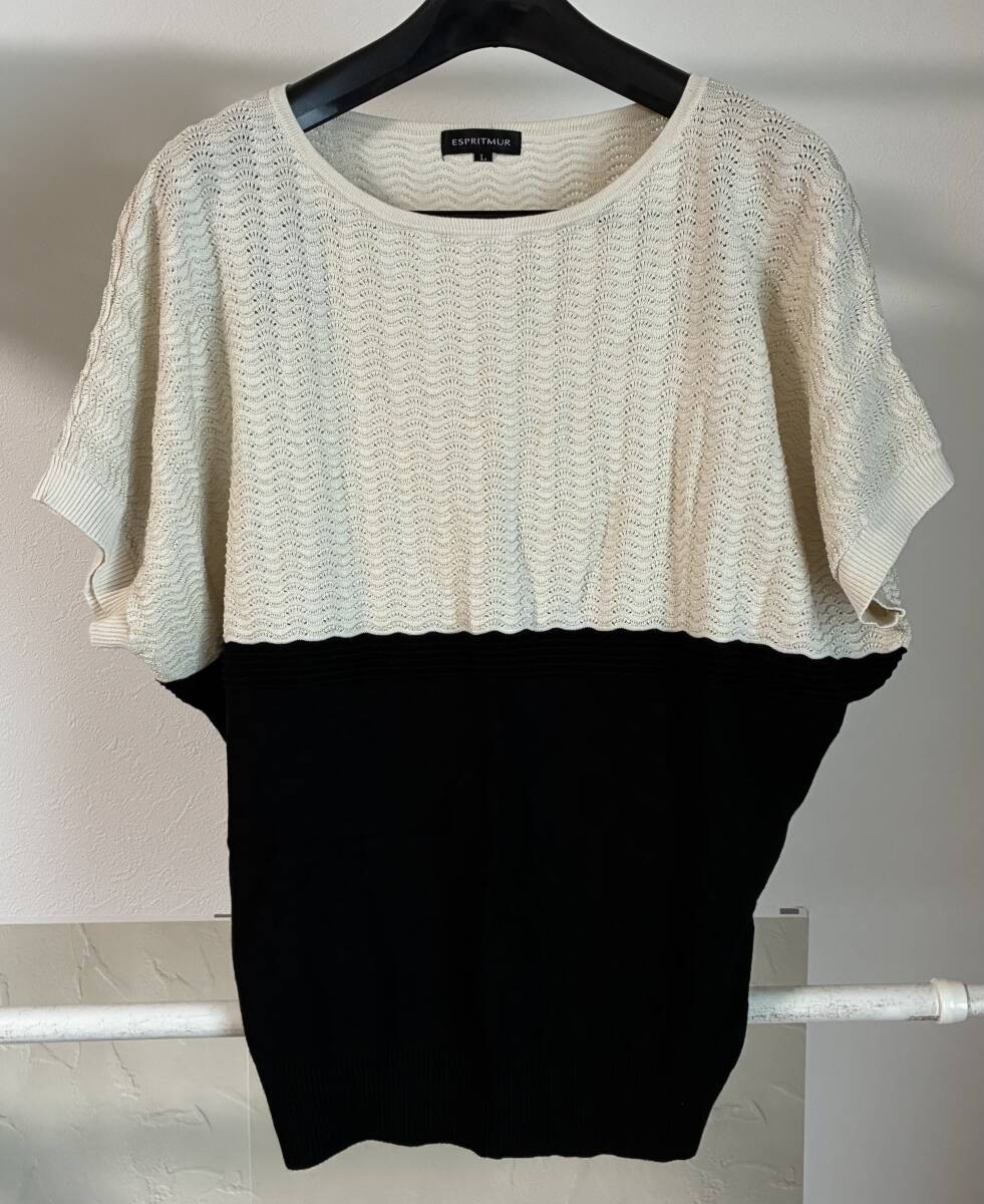 - エスプリミュール ESPRITMUR サマーニット フレンチスリーブ ラウンドネック 2トーン ブラック ホワイト(ベージュ) L