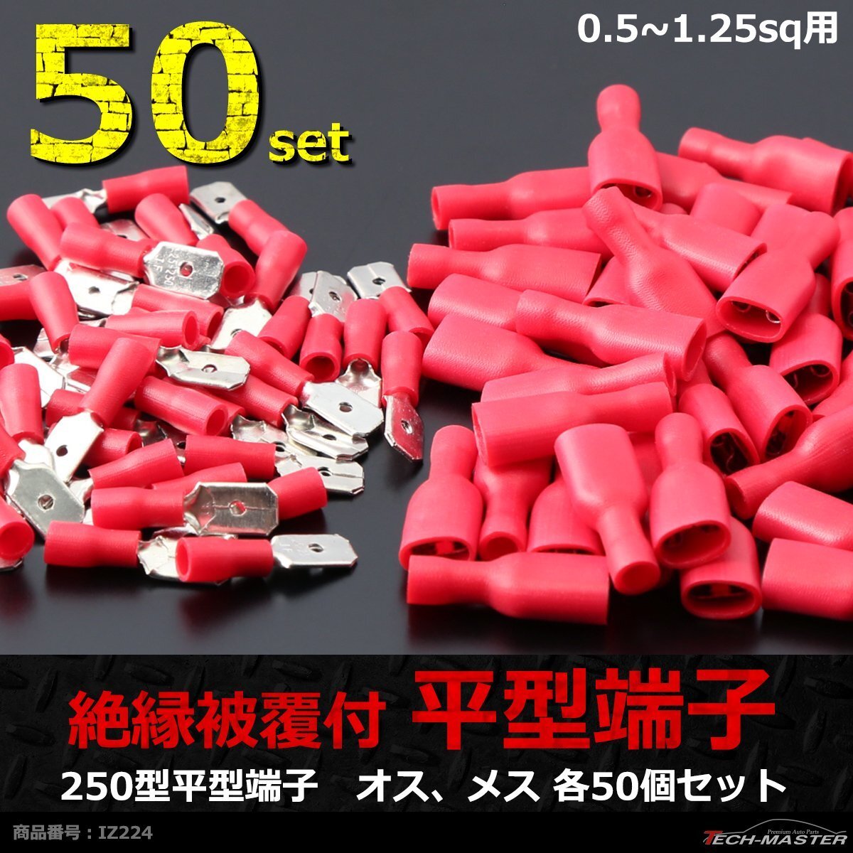 - 絶縁被膜付き 250型 平型端子 オス、メス 各50個セット 0.5?1.25sq IZ224