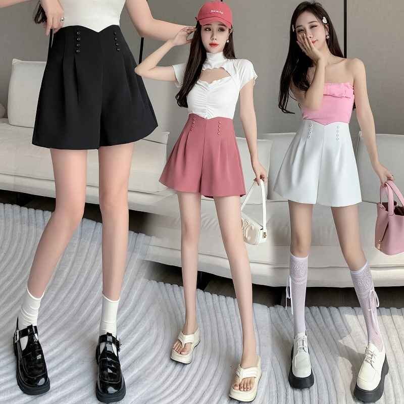 - 全3色 ショートパンツ ショーパン ハイウエスト 無地 シンプル XL ピンク