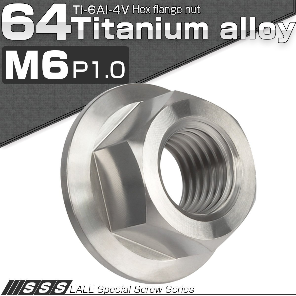 - 64チタン M6 P=1.0 フランジナット セレート無し フランジ付き六角ナット シルバー JA596