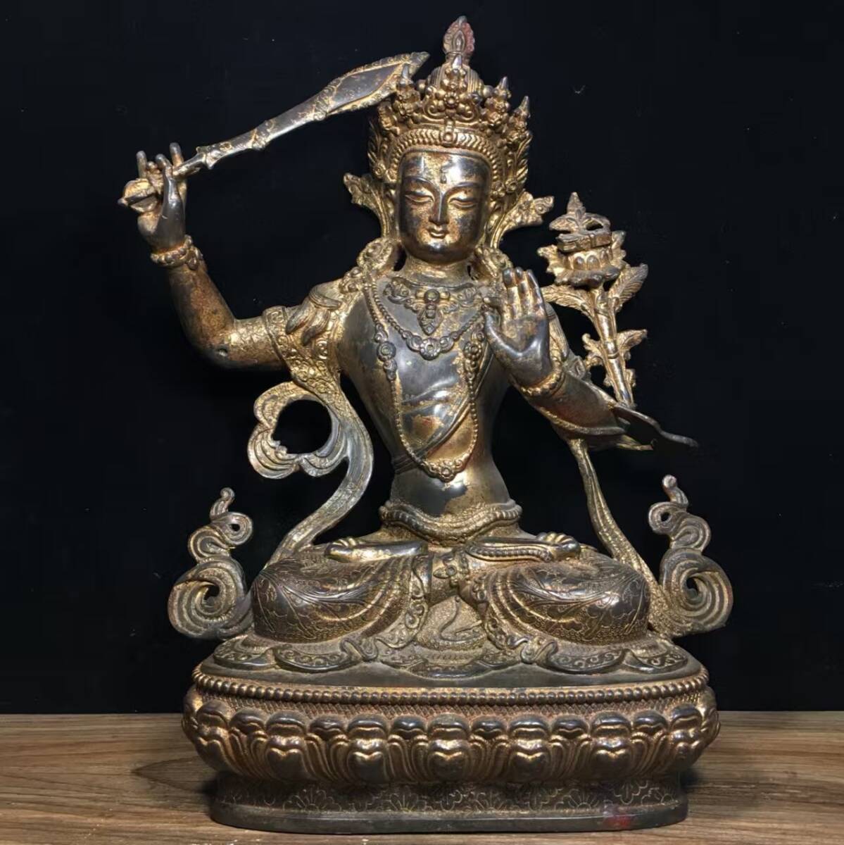 - 仏像 時代旧蔵 清時代 古銅文殊菩薩 銅製 仏教古美術 細密細工 廃寺旧蔵 廃寺買出品 古置物 中国古玩 9.3