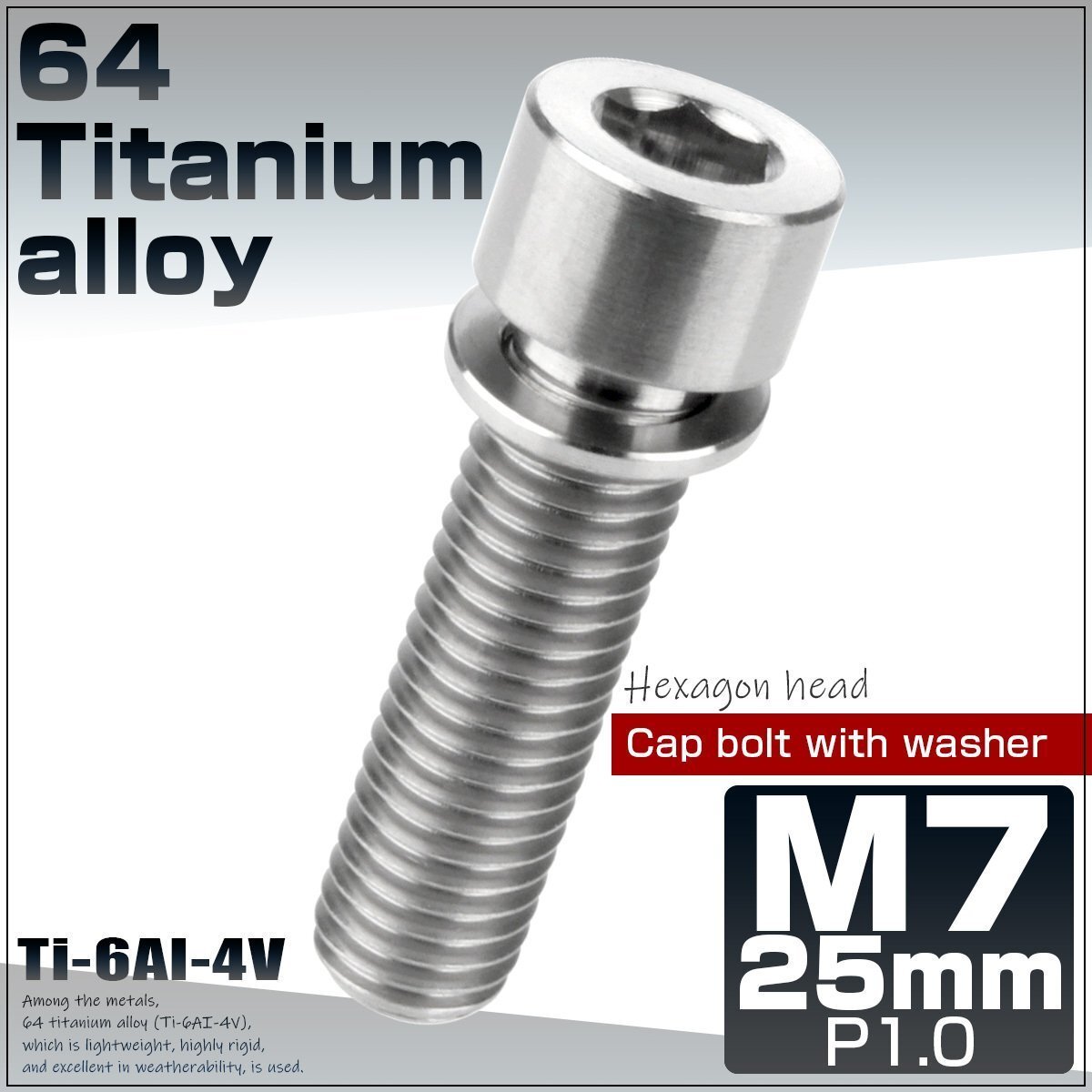 - M7×25mm シルバー 64チタン製 キャップボルト ワッシャー付き ステムボルト チタンボルト JA718